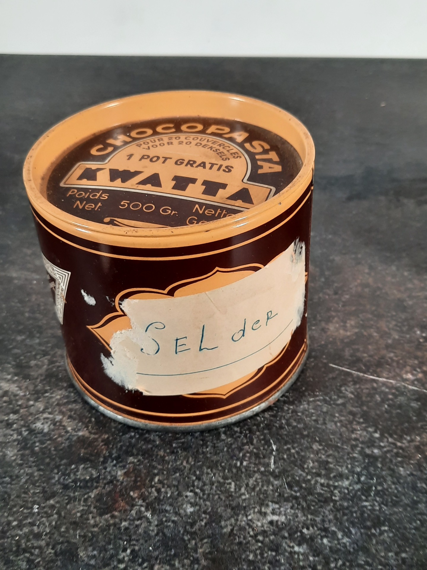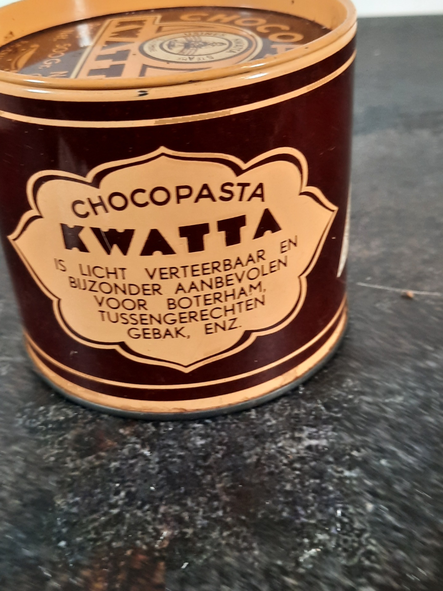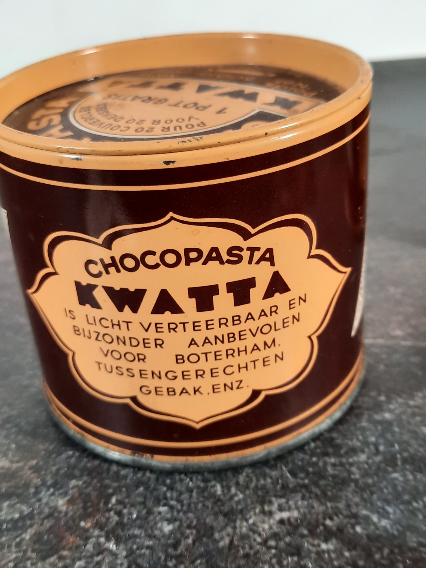 Hierbij bied ik deze 2 blikken doosjes van Kwatta Chocopasta aan.