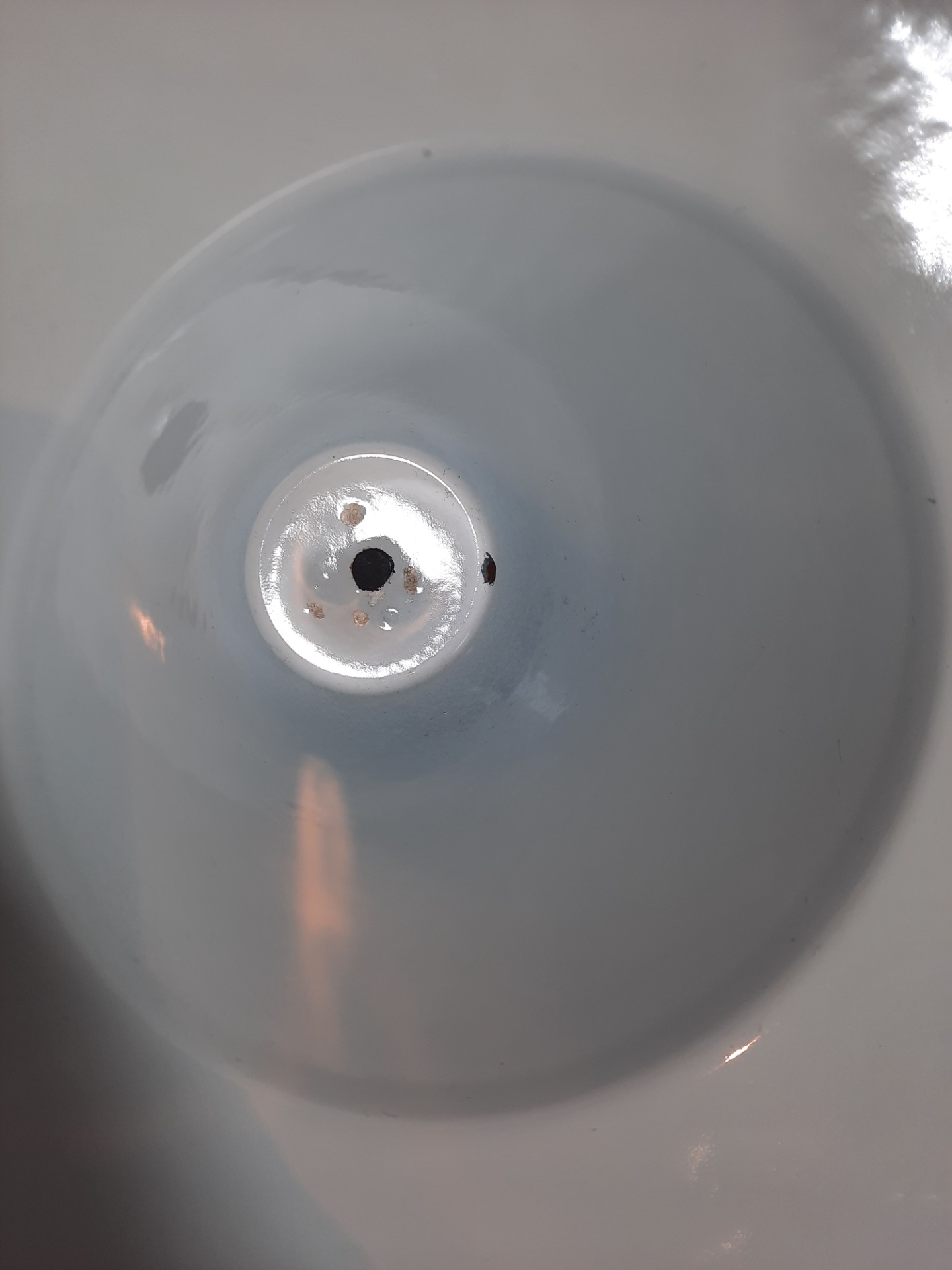 De lampschaal heeft aan de bovenzijde 2 kleine kapjes en aan de binnenzijde helemaal vanboven.