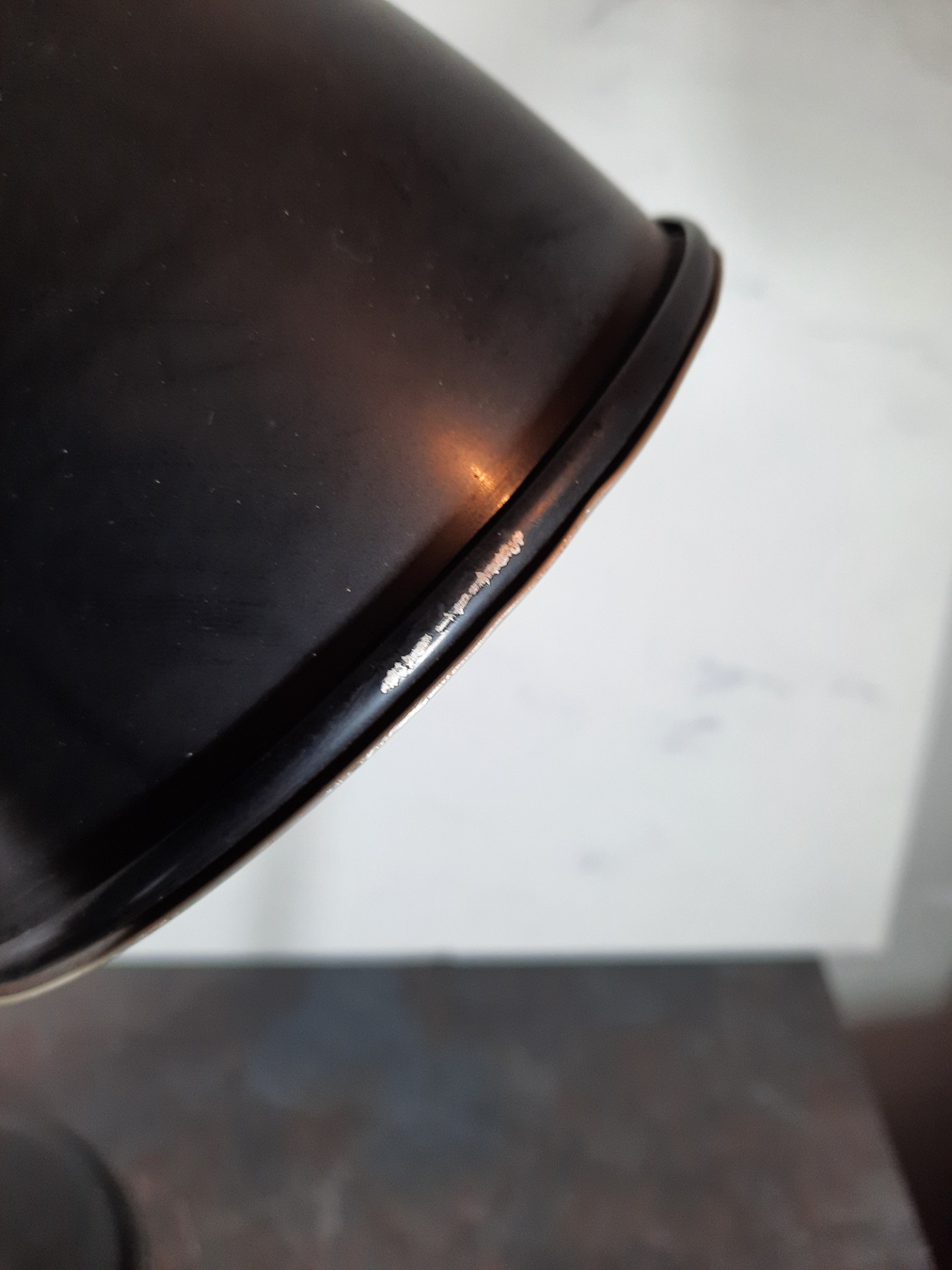 Hier en daar zijn er wat schoonheidsfoutjes te zien aan de lamp, maar dat mag wel na +-75 jaar oud te zijn!