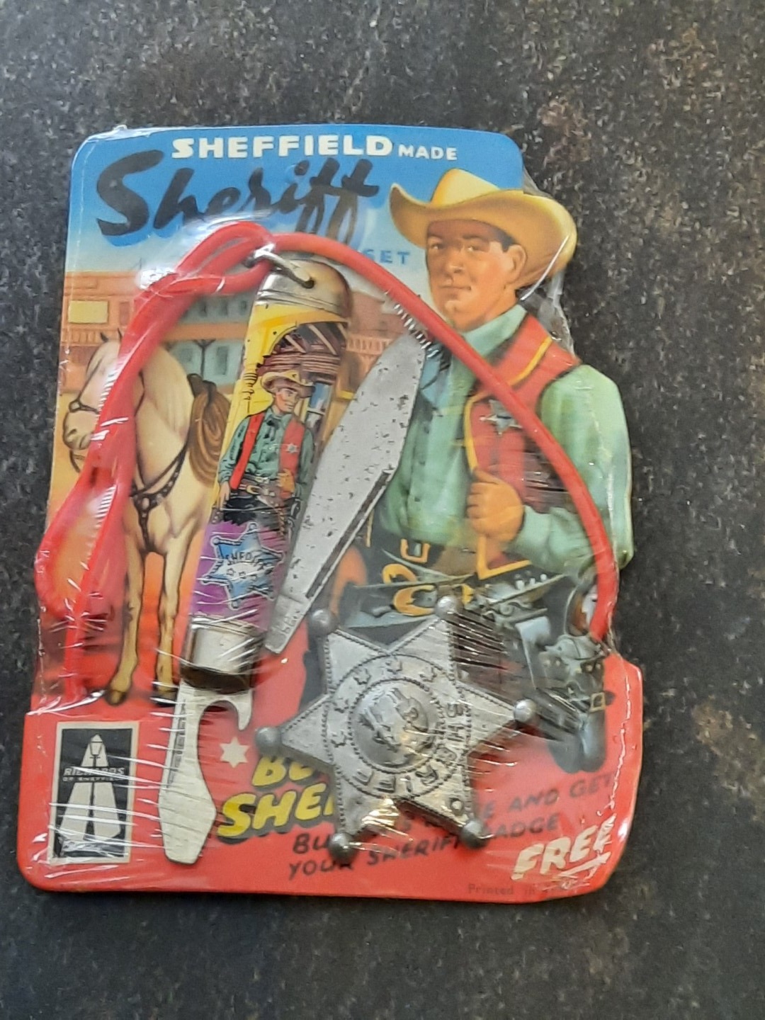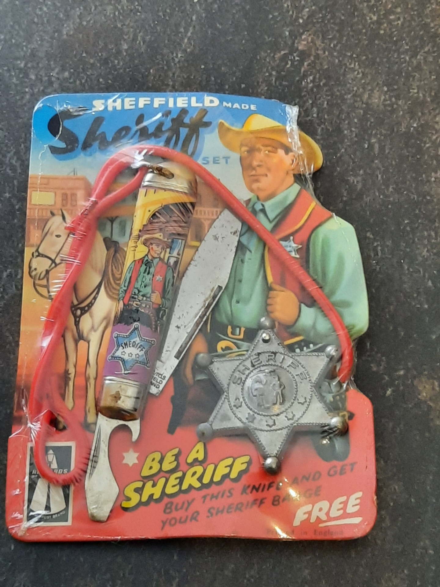 Hierbij verkoop ik deze prachtige Vintage Sheffield Sheriff set in de originele verpakkingsdoos.